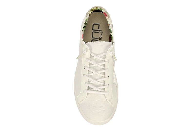 Find your uncommon style in the HEYDUDE Karina women’s slip-on sneaker. With a cotton canvas upper featuring lively prints for a custom feel, this sneaker is machine washable for easy maintenance. The removable Memory Foam footbed and leather lining offer ergonomic support, cushioning your steps while the ultralight outsole sets you free to explore unfettered.