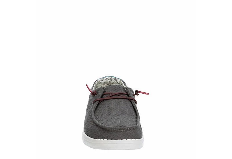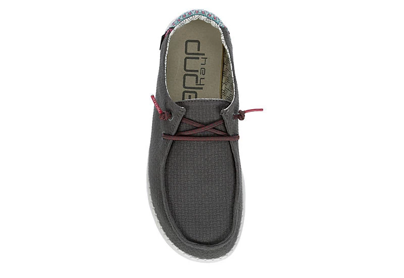 Relax into your passion with the HEYDUDE Wendy Aztec women’s slip-on sneaker. With a soft canvas upper featuring a contrasting heel detail and elastic laces for a secure fit, this slip-on sneaker is machine washable for easy maintenance. The removable Memory Foam insole and leather lining offer ergonomic comfort and cushioning, while the ultralight outsole lets you explore unfettered.