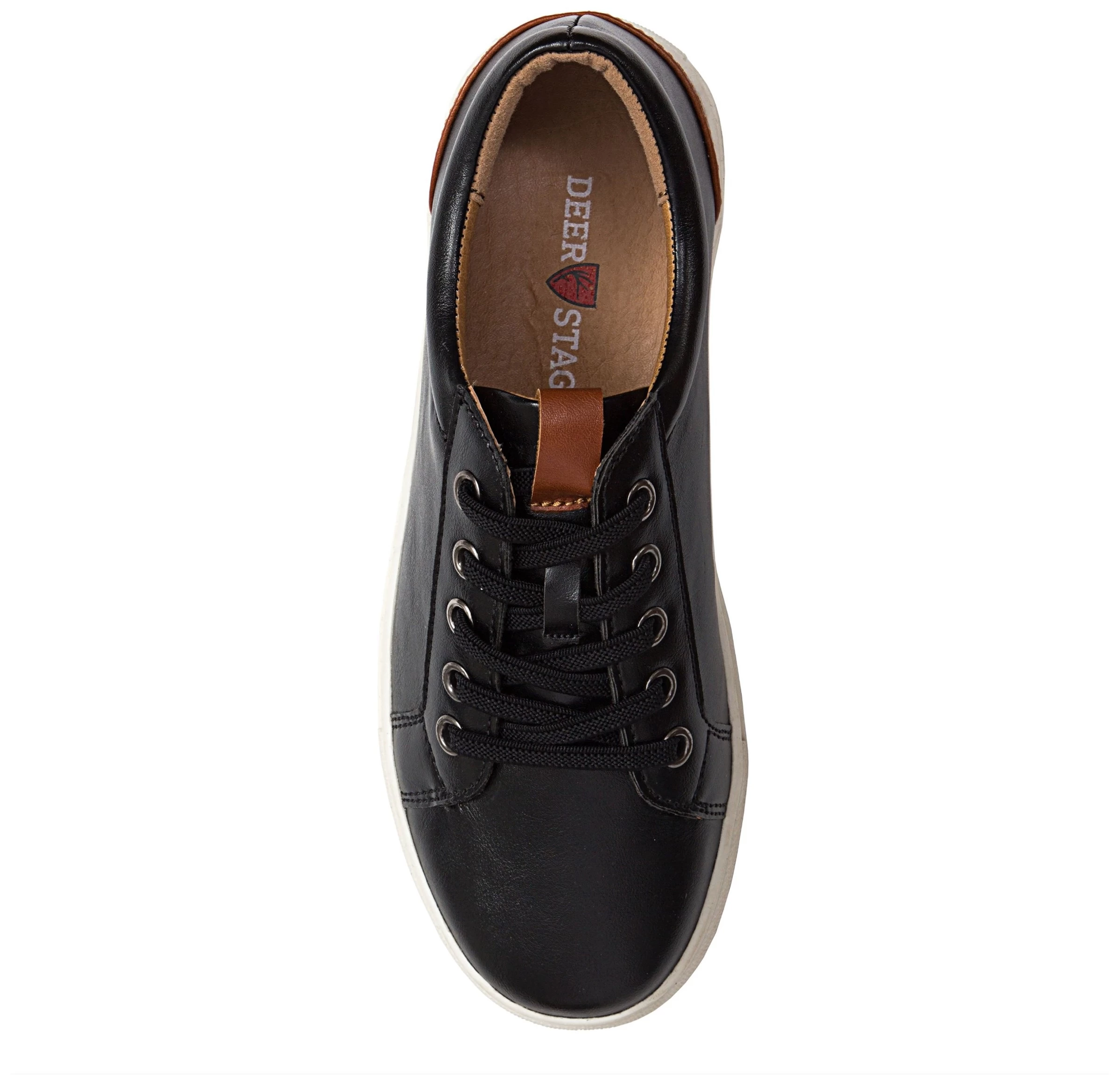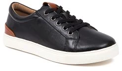 - Faux leather upper in a sneaker style with a round toe