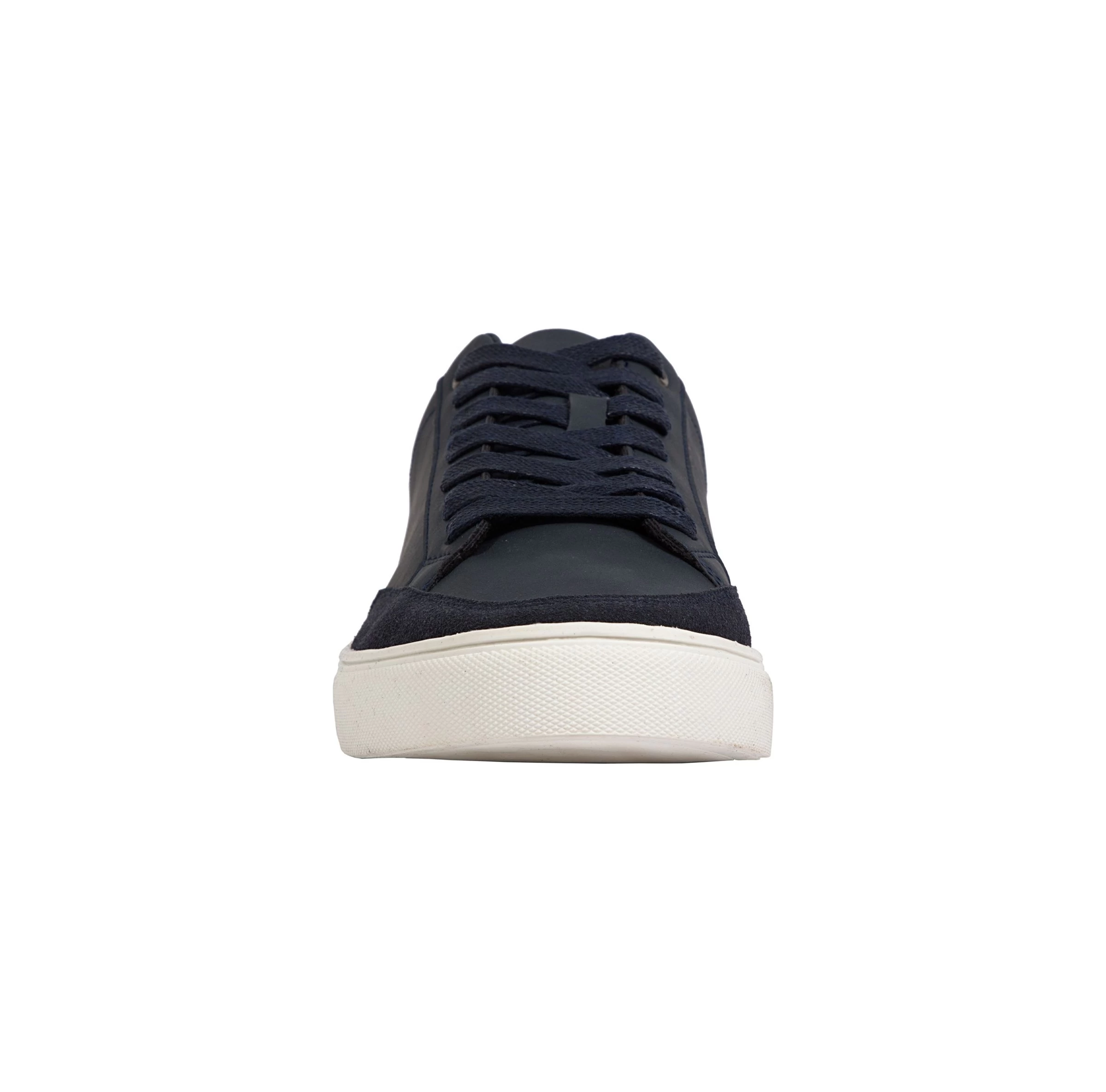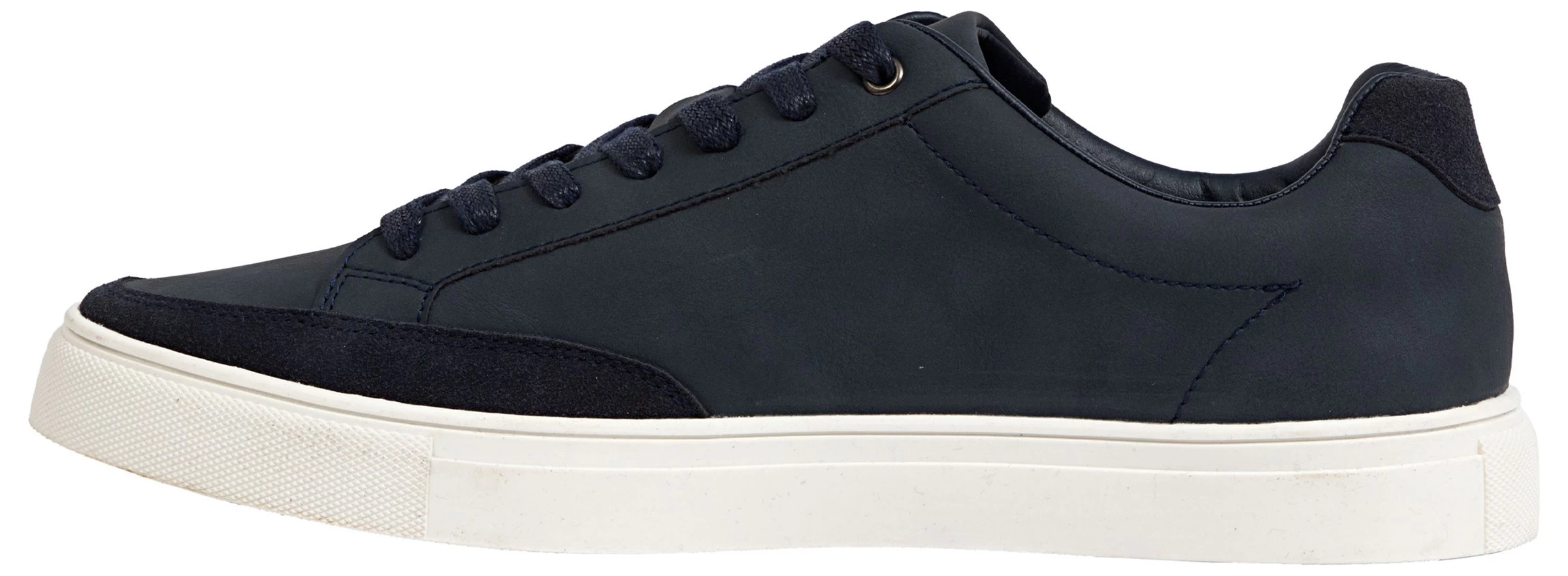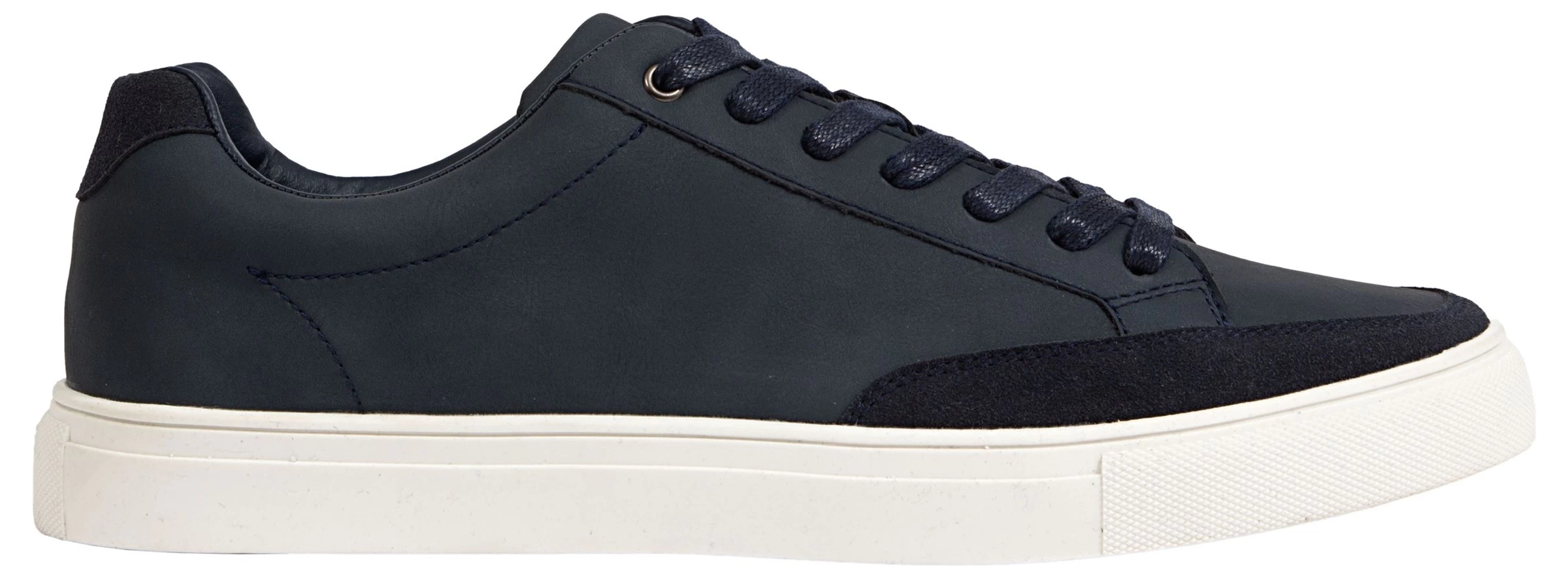 - Faux leather upper in a sneaker style with a round toe.