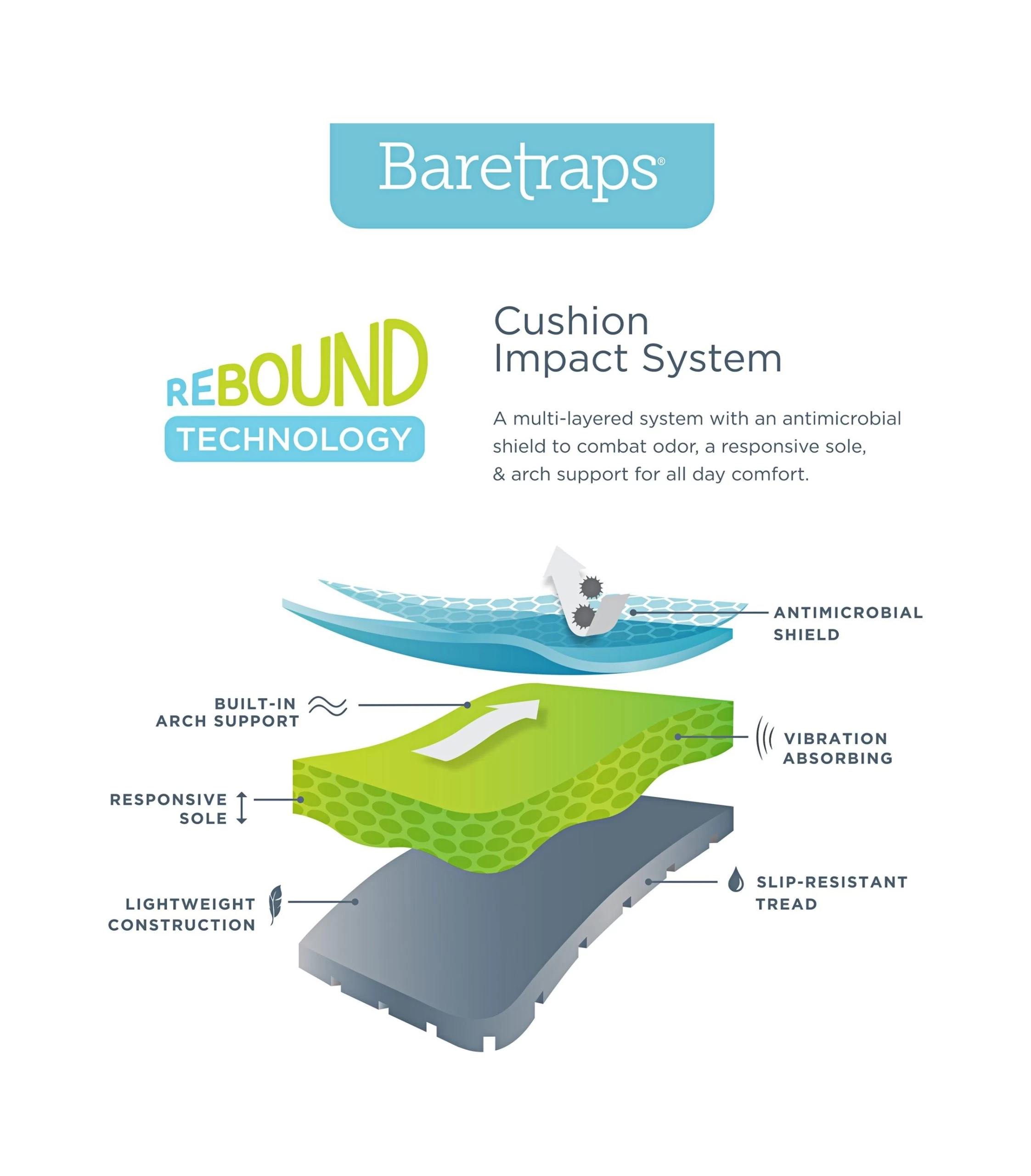 - Rebound Technology provides layered comfort with additional arch support.